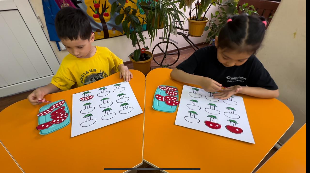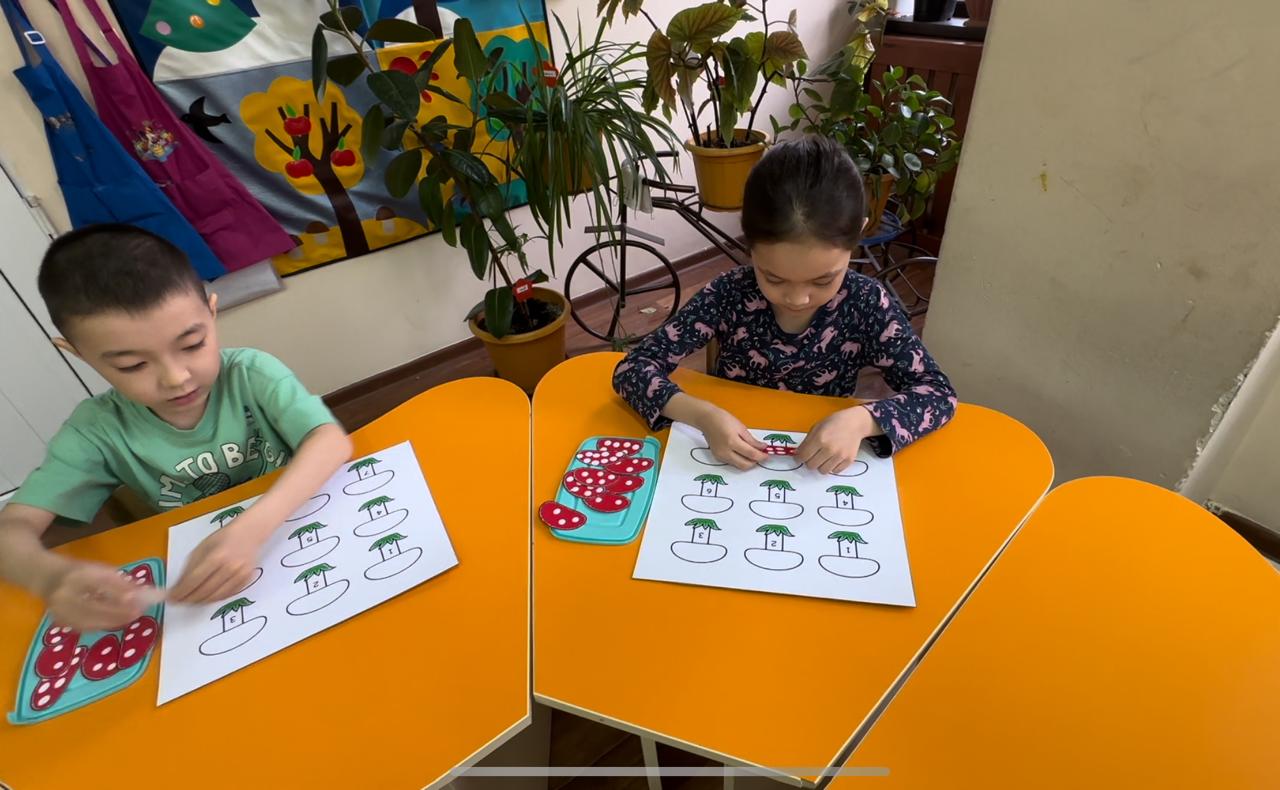 Ойын шарты: Саңырауқұлақ қалпағындағы нүктелерді санап, сәйкес санға орналастыру.